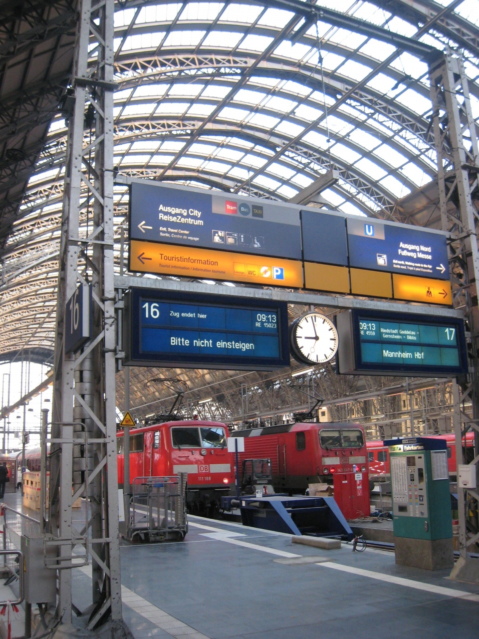 フランクフルト中央駅は24番線もあるアーチ型の歴史のある大きな駅です。今回はケルンまで往復するのと、レンタカーを返却するのに利用しました。列車の乗り場は電光掲示板で乗り場所に迷うことはありませんでした。レンタカーのカウンターは分かり辛く、店の人に聞いても分からない位でした。結局、窓口の場所は正面中央入口の脇に入ったところにあり、駐車場は駅を正面に見て、左手にあるオープンスペース(ゲートあり)でした。