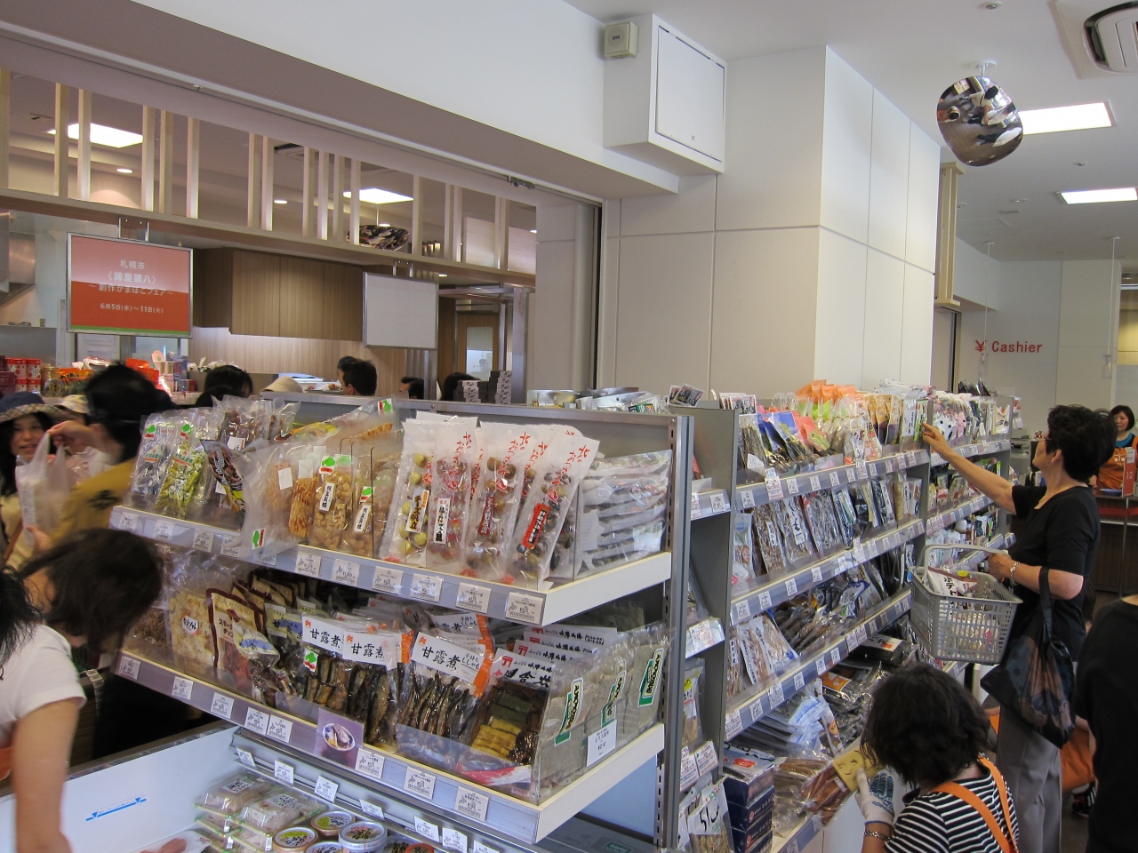 JR有楽町駅前の交通会館の1Fに北海道どさんこプラザはあります。店内はお酒、ラーメン、海産物、お菓子などがあり、北海道限定品などもあります。またイートインではソフトクリームが食べられます。以前はサッポロクラシックやコロッケが売られてました。ここでのお薦めは明太塩辛です。