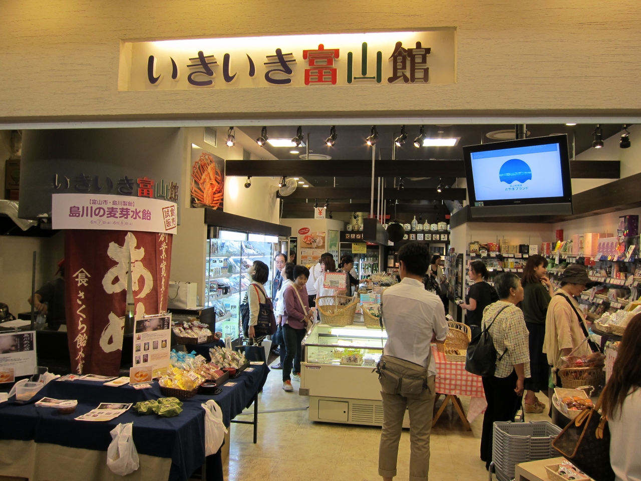 JR有楽町駅前の交通会館地下1Fにいきいき富山館があります。店内では富山の日本酒、富山ブラック(ラーメン)、ホタルイカの沖漬け等の特産品を買うことができます。時間が早ければ源の鱒寿司も売られています。私のお薦めは黒作り(塩辛)。これを買うのに定期的に通ってます。