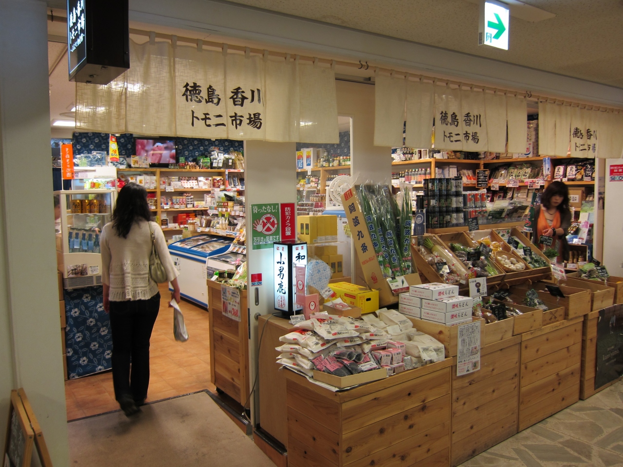 JR有楽町駅前に交通会館1Fに徳島・香川トモニ市場はありますが、少し奥まった所です。銀座・有楽町にあるアンテナショップでは珍しく二県合同のショップです。店内には本場の讃岐うどんや生鮮品が売られてます。ここでは多くの種類の釜田醤油を買うとが出来、ぶっ掛けうどん用の醤油を良く買います。
