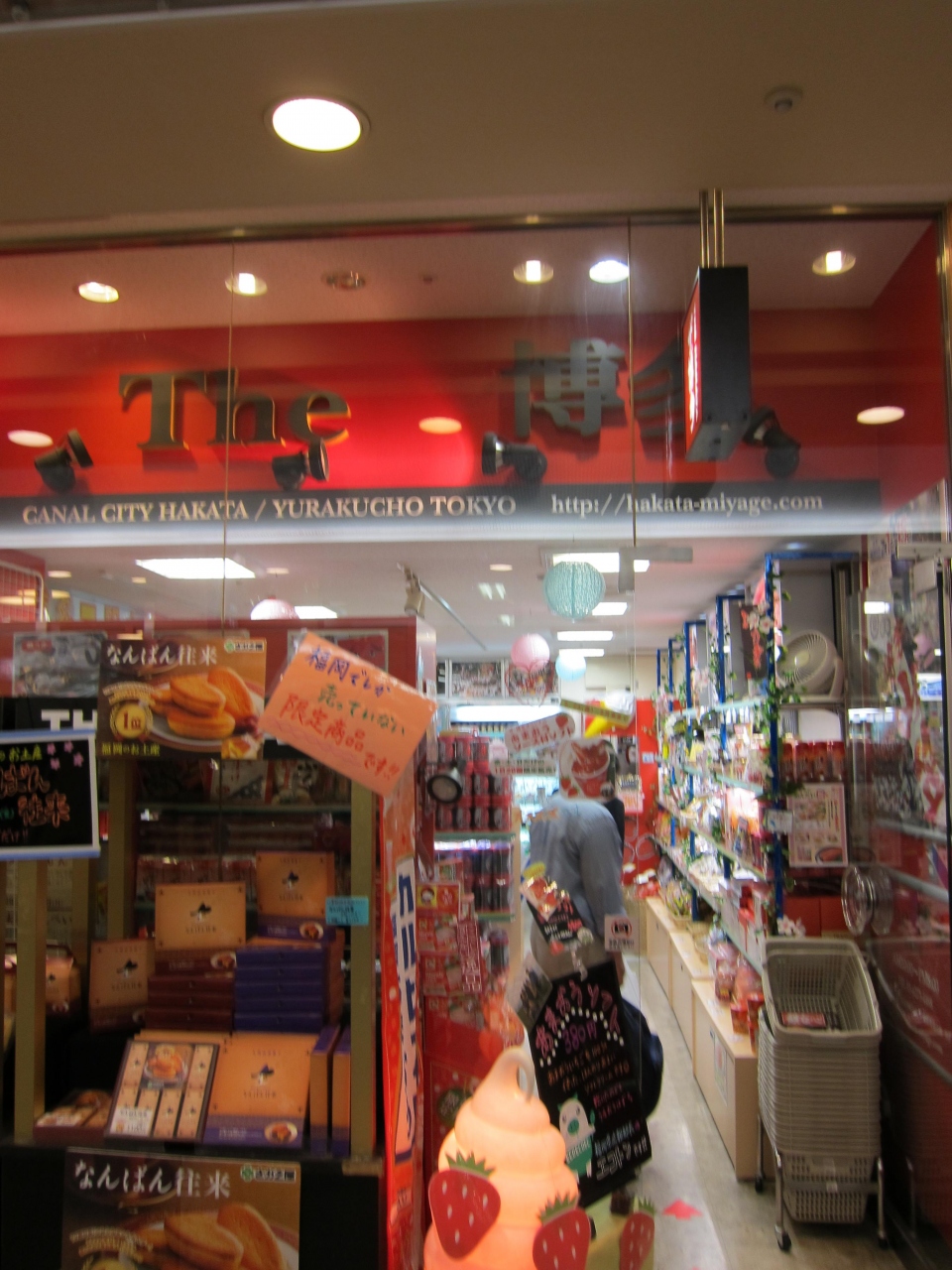 JR有楽町駅前の交通会館地下1F、中央階段を下りたすぐ横にザ博多はあります。店舗はそんなに大きくありません。店内では明太子、博多ラーメン、辛子高菜などの博多名産品だけではなく、くまもんグッズや九州の名品が多数売られています。