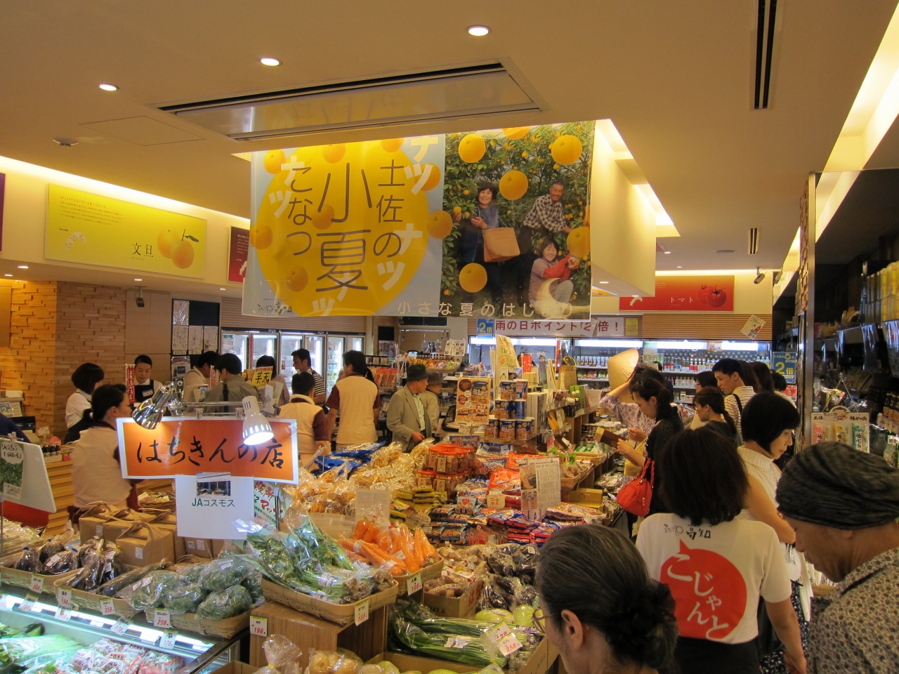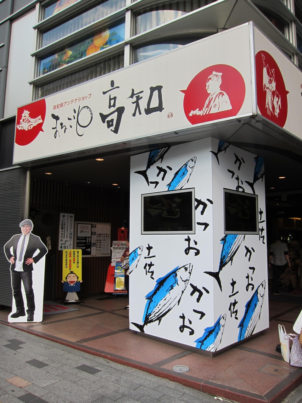 銀座一丁目駅3番出口を上がったところすぐに、まるごと高知があります。地下1階は工芸品、酒、1階は生姜、柑橘類、トマトなどの生鮮品、菓子などのスイーツが揃っています。お薦めなのはポン酢で、種類が沢山ありカツオのたたきに良く合います