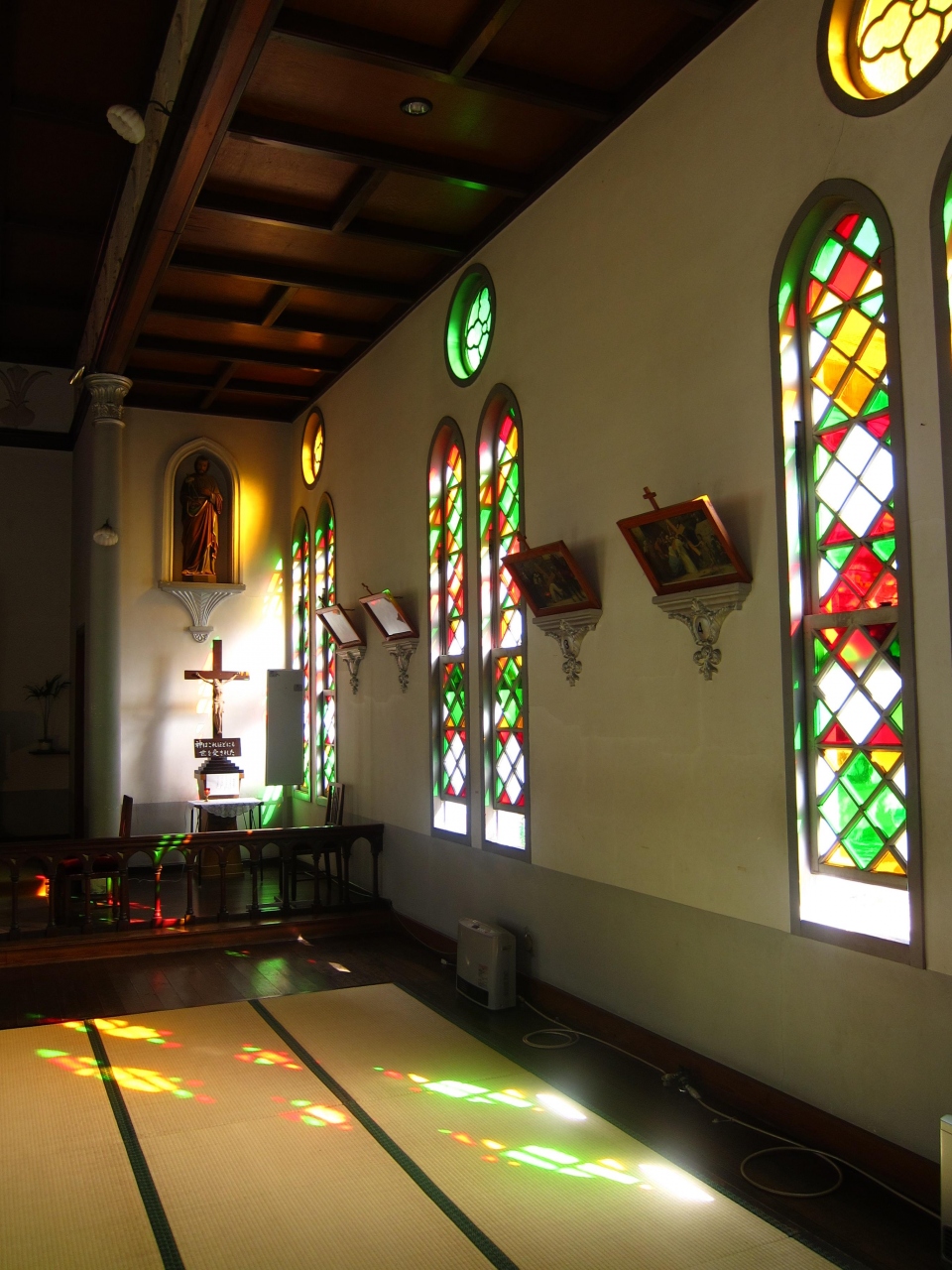 津和野カトリック教会は明治初期の長崎浦上村のキリシタン信徒を改宗させるために津和野藩に預けた信徒が乙女峠で殉教し、殉教徒の霊を慰めるのに昭和6年にドイツ人のシェーファによって立てられたゴシック式の教会です。乙女峠展示室が併設されていますが、生々しい資料が収められています。