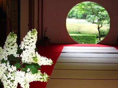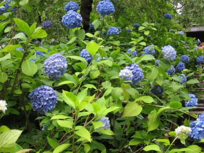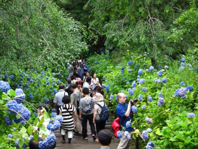 あじさい見ごろの週末土曜日に明月院に行きました。この時期は8:30開門なので、北鎌倉駅に8:25に着き歩いて行きました。開門時点ですでに100m以上の人が並んでおり、凄い人でした。入場料は500円。山門に続く参道はあじさいをバックに写真を撮られるかたで渋滞してます。また本堂の丸窓の写真を撮るのにも並ぶしだいです。朝一でもここまで凄い人だとは思いませんでした。ですが。あじさいは少し盛りをすぎていましたが、明月院ブルーのあじさいをみることが出来ました。