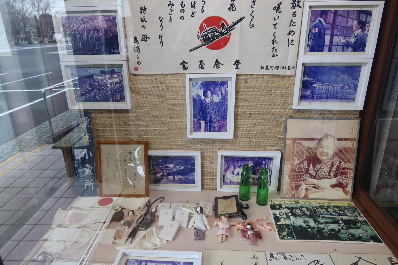 知覧の飛行場があった知覧平和公園の一角に「特攻の母」鳥濱トメの流れをくむ食堂があります。それが特攻おばさんの店 知覧茶屋です。店内の座敷席には特攻機の風防や、当時の写真が展示されています。頂いたのは天ぷら付きの他蕎麦とうどん。知覧の名産の茶を使った茶そばは茶の香が良いかと思いましたが、食べてみると普通の蕎麦とはあまり変わらずちょっと残念。時間が掛かるので麺にしましたが、釜めしにしておけばよかったかなと思いました。