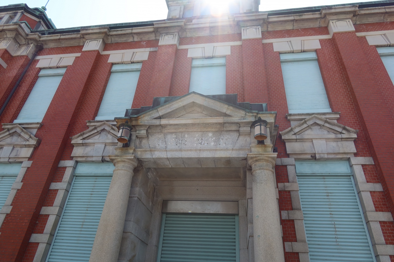 高岡の山町筋を歩いていると、高岡御車山会館の対面に一際目立つ赤レンガの洋風建築があります。それが赤レンガの銀行(旧富山銀行本店)です。大正4年に高岡共立銀行本店として建てられた物で、4年前まで利用されていました。現在はシャッターが下ろされ外観しか見られません。左右対称で、高い窓、正面中央の入口が特徴的な大正レトロ建築です。
