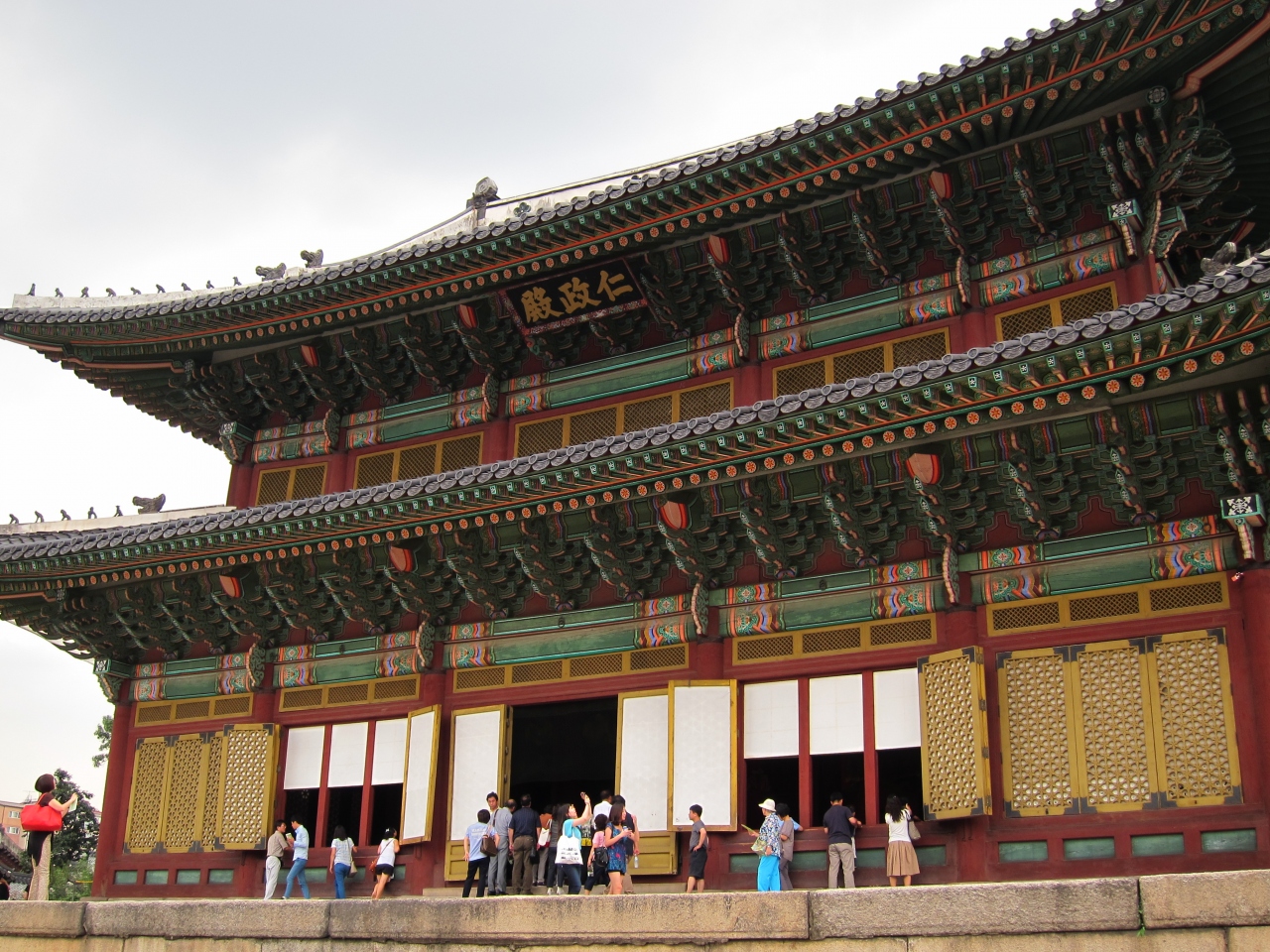 仁川空港からソウル中心地はバスで約1時間程かかります。丁度行ったときに空港にルイ・ヴィトンの免税店がオープンしたばかりで賑わっていました。空港内では韓国の民族衣装を着た方が居り、観光客と一緒に写真に写るサービスがあります(無料)。