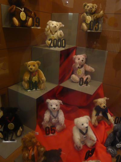 アウトバーンを降りて約10分程でつきます。駐車場が併設されているので駐車には困りません。入口を入ると大きなベアがお迎えしてくれます。入場券を買う際にどこから来たのか聞かれました。少し待たされてあと入ると、テディベア(シュタイフ)の歴史をジオラマに日本語で解説が流れました(この為に聞かれたんですね)。そのご、エレベータで上階に上がり、旅をしていきます。その後はシュタフの作品の展示。出てくるとショップがあります。日本より大分安く買えます。アウトレット店もあるのですが休みの日で見れませんでした。