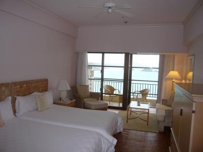 まず駐車場は宿泊者用とそれ以外は別になっています。ホテル内に入るとロビーからプール越しに素晴らしいビーチが望めます。オーシャンビューの部屋に宿泊しました。部屋からはさらに上からビーチを望むことができます。このホテルに泊まるならオーシャンビューを勧めます。車を使わない場合は食事はホテル内で取るしかありませんが、どのレストランも値段が張るので覚悟してください。スタッフの対応も良く、挨拶は当然ですし、「写真を撮りましょうか」と声をかけてくれます。さすがサミットを行うホテルですね。