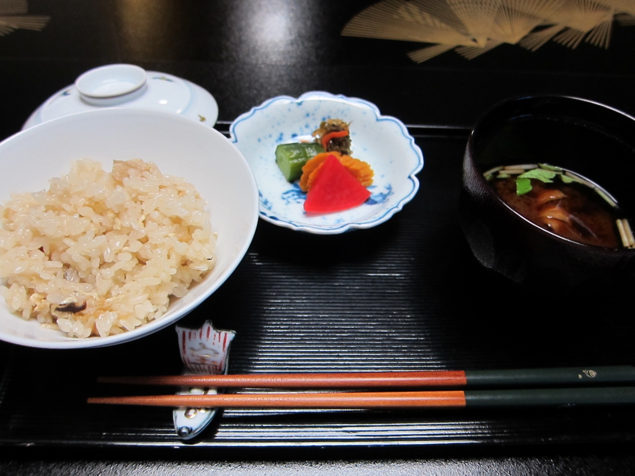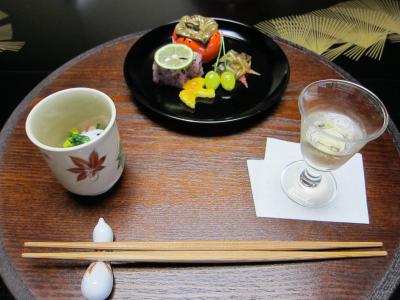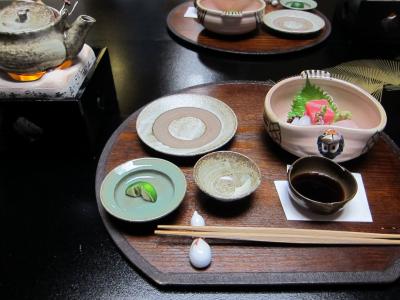 客室はすべて離れで客室が少ないため他のお客さんにはほとんど会いません。食事もすべて離れの客室まで配膳してくれます。当日夜雨が降ったのですが、湯屋までは庭園を歩かなければならないため傘が必要になりますが、さりげなく離れの入り口に用意してくれていました。行き届いたサービスですね。
