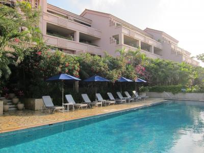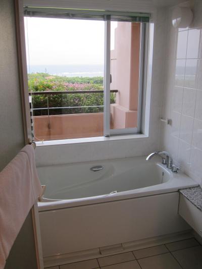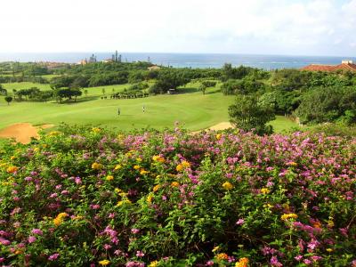 トライアスロンが開催される1週前の4月13日~15日に2泊しました。ホテルからの眺めは前浜が望める東急には敵いませんが、目の前にはゴルフ場の緑とその奥に海が望めます。部屋は広く、テレビが2台置かれ、窓に面してリコライニングベッドが設置されておりゆったりと過ごせました。敷地内には色々なレストランや温泉などの施設があり、ホテルからはスタッフに言えばすべて車やバスで送迎してもらえます。宮古島ではNo.1ではないでしょうか。
