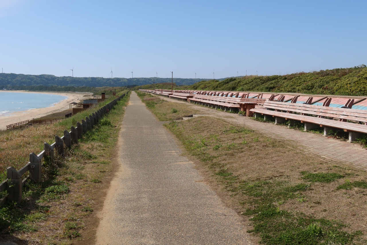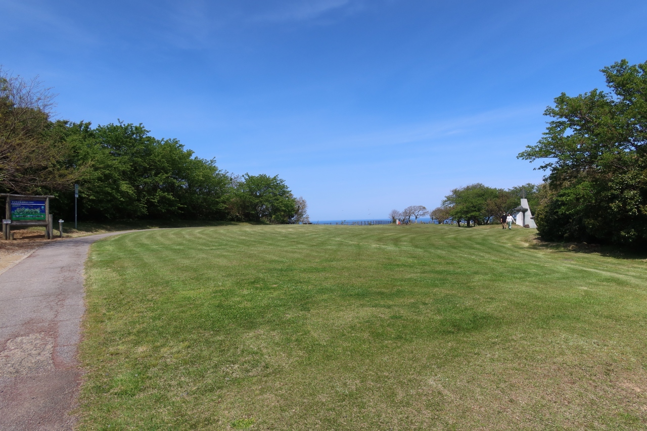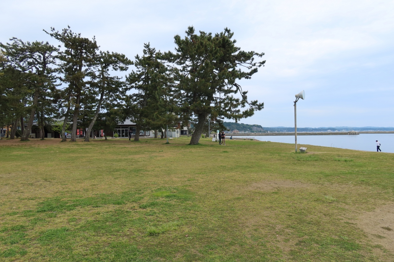 能登半島の景勝地 見附島の対岸にある公園がフレッシュライン見附公園です。公園内には駐車場、噴水広場、多目的広場、レストハウス、国民宿舎、野営場が散在してあるレジャー公園となっています。車中泊で回る人にとっては駐車スペースも十分にあり、市街地にも近い便利な公園だと思います。