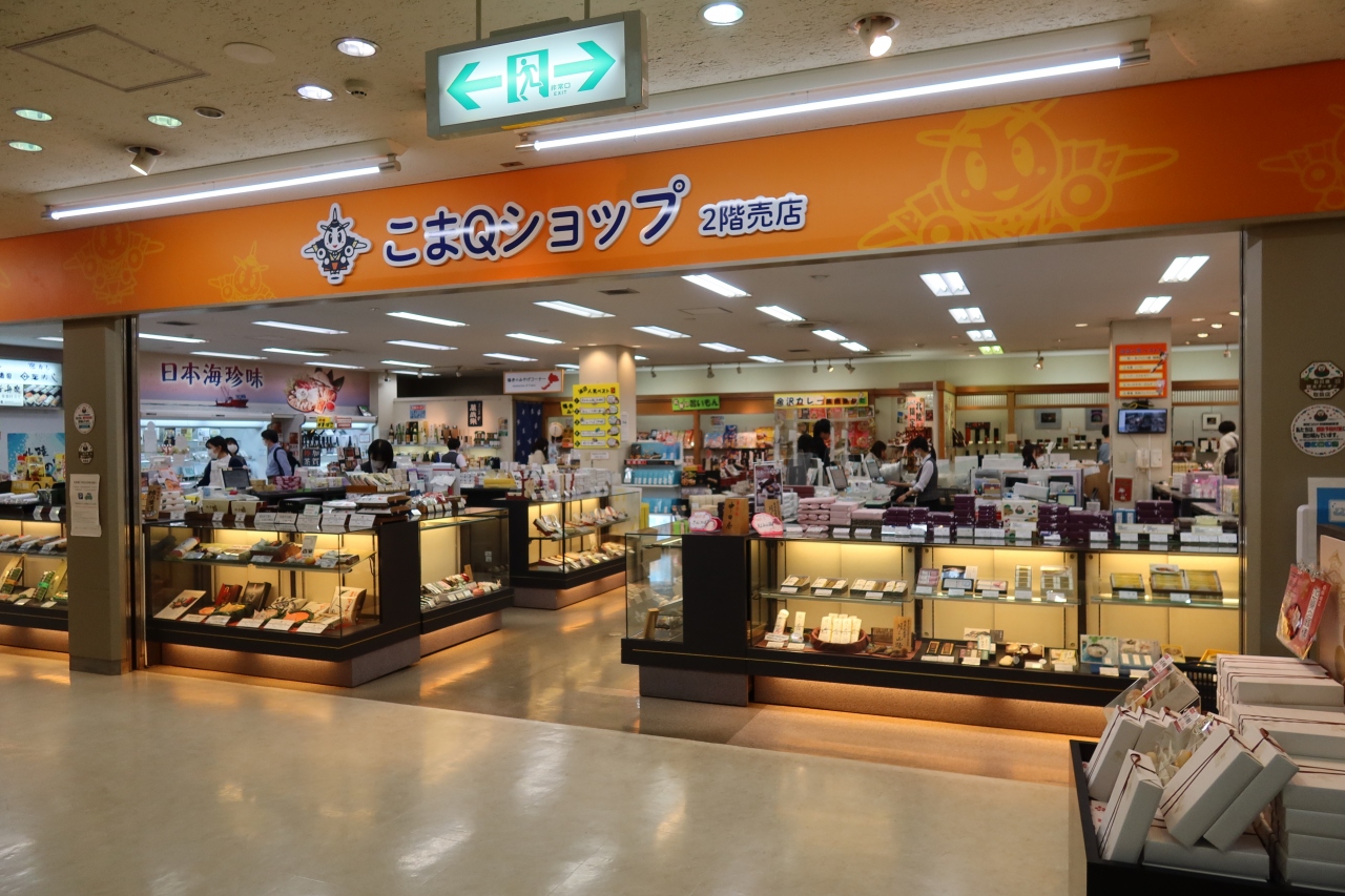 小松空港国内線2階の出発口入口前にあるお土産ショップがこまQショップ2F売店です。以前訪れたときは、もっと2階にお土産ショップがあったと記憶しているのですが、シャッターが閉まっていて開いていりのはここだけ。店内では一通りの北陸土産が買えますが、寂しい限りです。