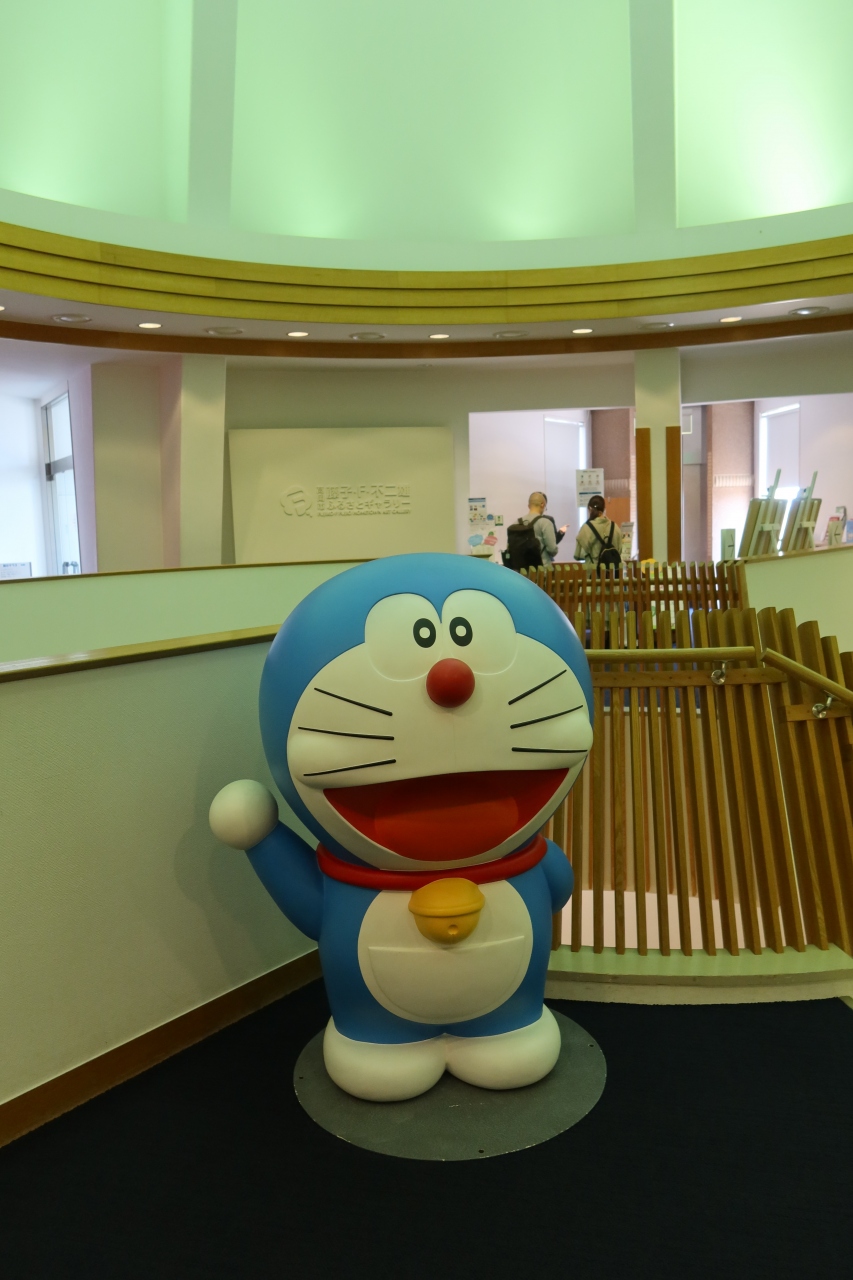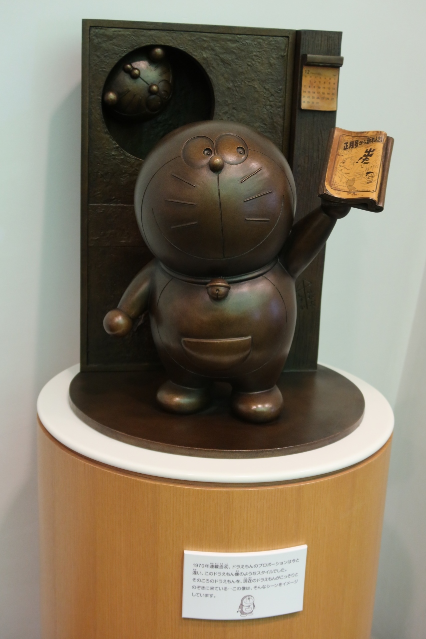 高岡市美術館の2階に高岡市藤子 F 不二雄ふるさとギャラリーがあります。どこでもドアを模した入口を入ると、藤子・F・不二雄の漫画家としての歩みや、作品数は少ないですが、ドラえもんを始めとした作品の原画などが展示されています。手塚治から送られた手紙は特に印象に残りました。