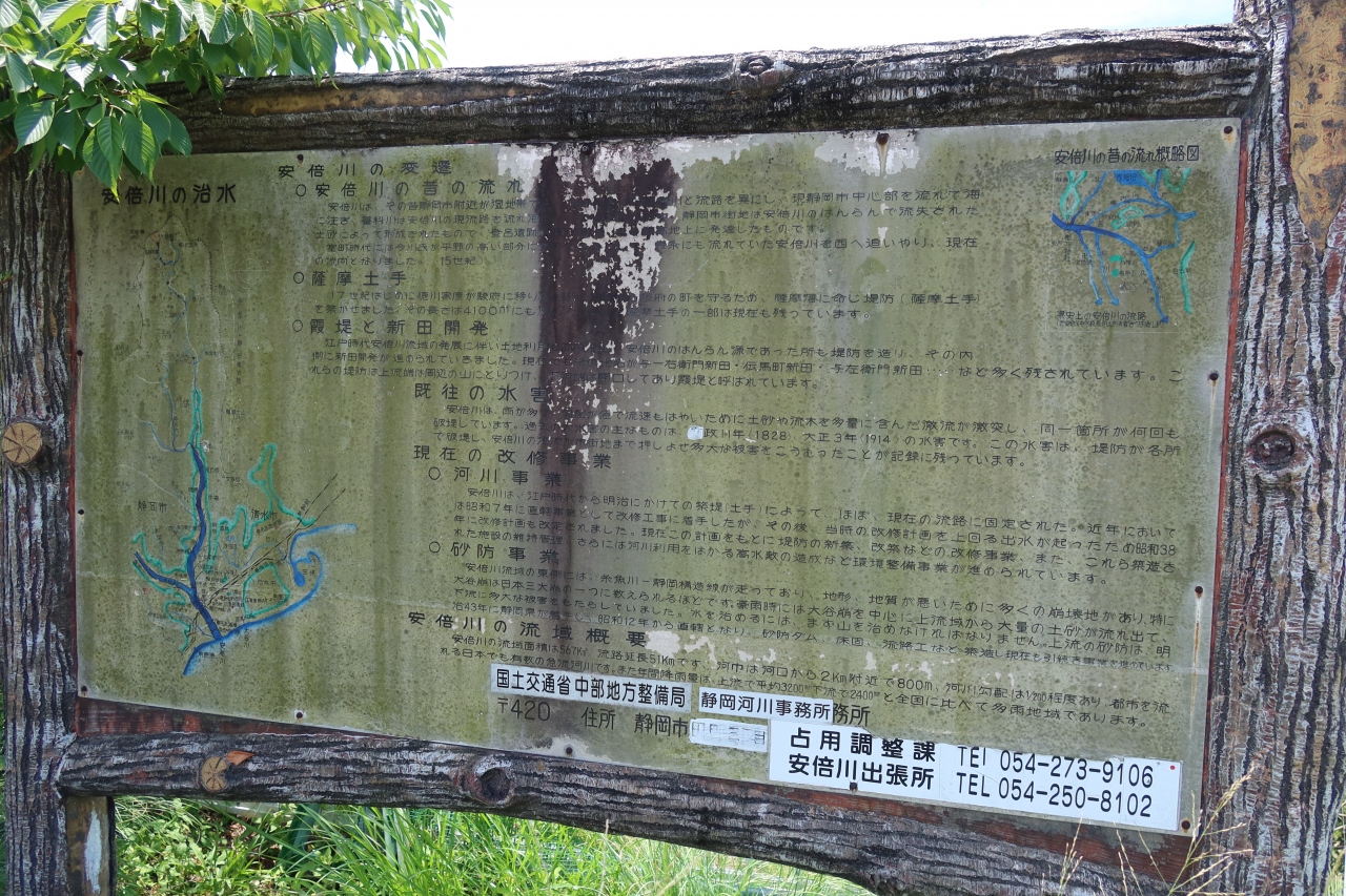 静岡市の西側を流れる一級河川が安倍川です。静岡と山梨の県境辺りの大谷崩に源流がある河川で、昔の地名、安倍群に由来すると云われています。川幅が広く、河岸は広大な広場となっており、地元の人が運動したり、自転車に乗り走る姿が見かけられます。