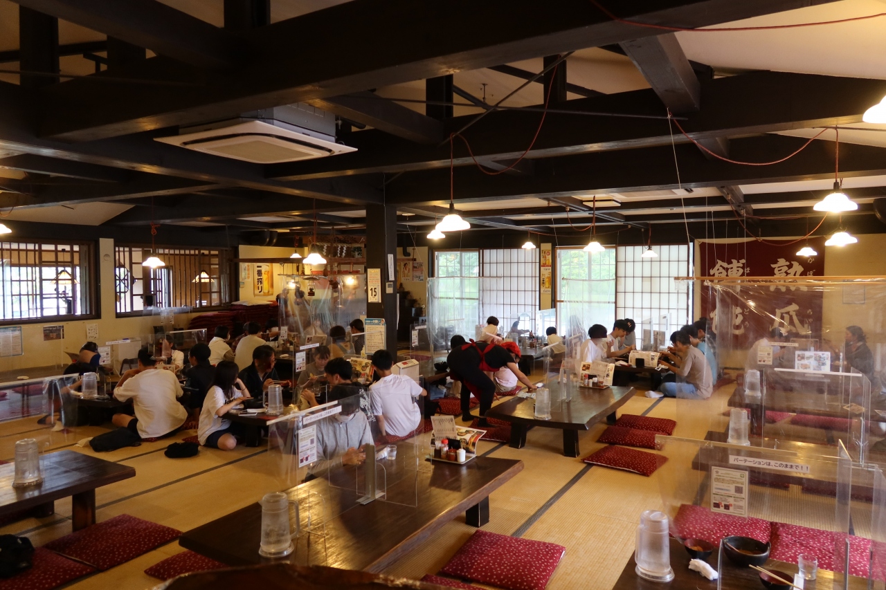 山中湖の南西側湖畔にある山梨名物のほうとうのお店です。人気のあるお店で、平日の昼11:30頃に行くと、駐車場も店内もほぼ満席。店内は古民家風の雰囲気の座卓の和室です。ほうとの種類はいくつもありますが、定番のかぼちゃほうとうを頂きました。独特な麺の感触がとても美味しいかったです。