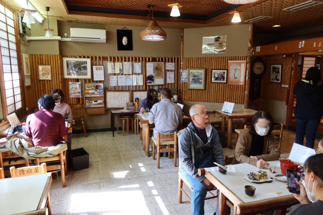 旧鞠子宿から離れた二軒家交差点から1.5km程山の中に入った所に渓月があります。丁子屋のとろろ以外も食べてみたいと思い訪問しました。日曜の昼に訪れると見えませの駐車場は満車、さらに店に行くと1時間半以上待ちと言われ食べるのを断念。聞いたところ、週末は予約なしだと入れない程の人気だそうです。値段も安いからでしょうか。週末行くなら予約して行きましょう。