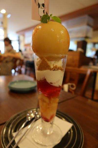 ランチ後に甘い物を食べにいきました。頂いたのは桃パフェ。愛知農場の濃厚ミルクアイスの上に丸ごと桃一個が乗せられたパフェで、桃もみずみずしさにアイスと抜群の組み合わせ。私たちはスイーツを食べましたが、ランチに訪れている人も多くほぼ満席でした。- 旅行時期