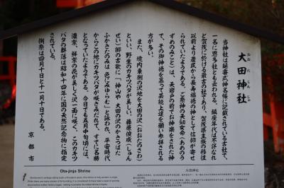 上賀茂神社から東に800m程行った住宅街の奥にある神社が大田神社です。天鈿女命を祀る大田神社は上賀茂神社の摂社の一つになっておりますが、上賀茂神社よりも創建は古いそうです。燕子花が有名ですが、燕子花の花がない時期でも、こじんまりとした鎮守の森に囲まれた社殿は趣があり、個人的にとてもお気に入りの神社です。近くにこの様な神社があるといいのになぁと思います。