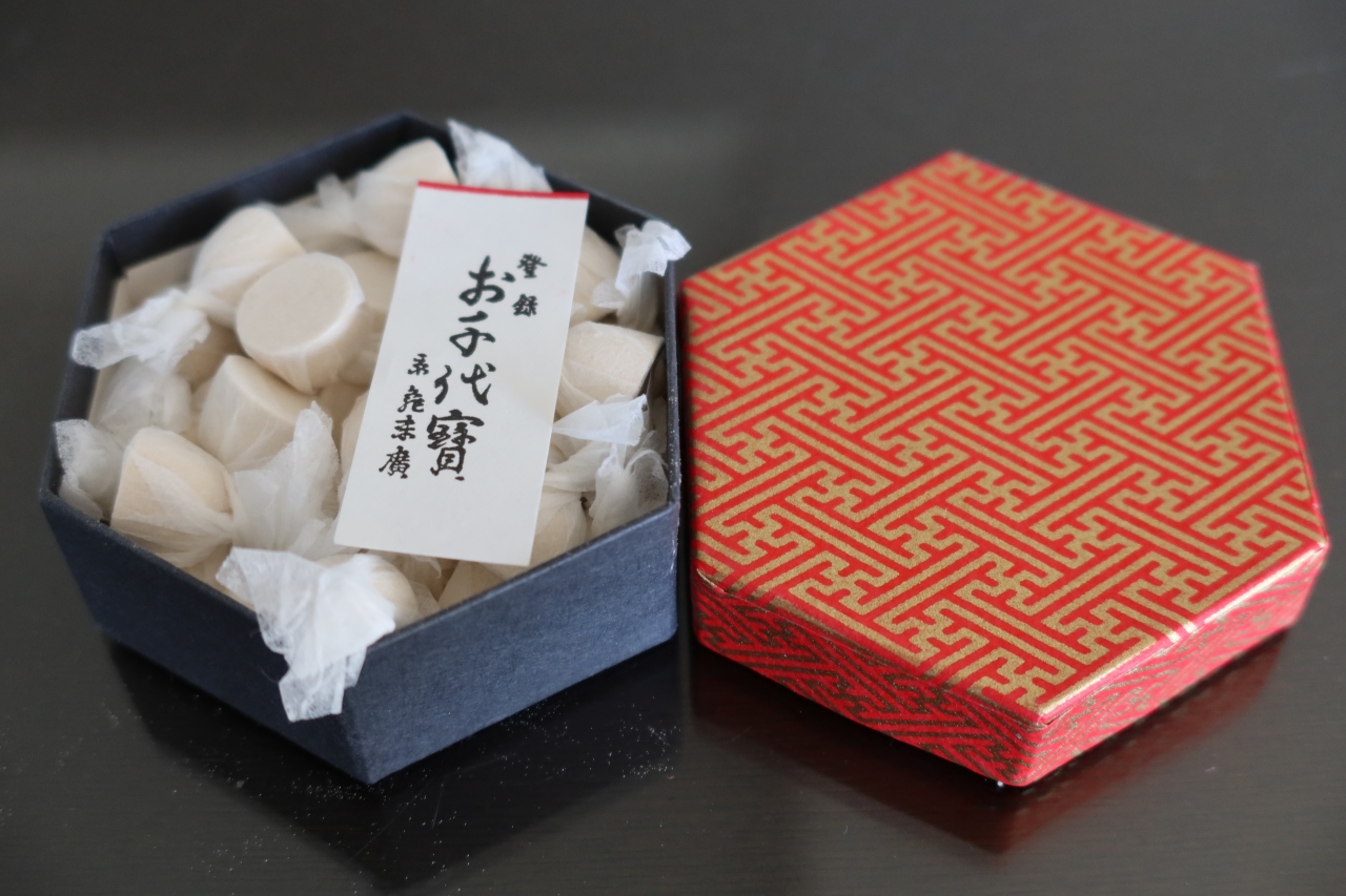 この店の人気商品は華やかな干菓子が入った「京のよすが」ですが、「お千代宝(おちょぼ)」もお薦めです。和三盆のシンプルなお菓子ですが、口の中に入れるとフワッとして溶け、上品な甘さが楽しめます。六角形の箱も可愛い。- 旅行時期