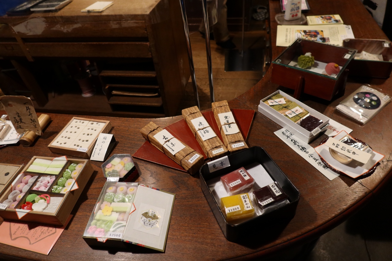 烏丸御池から一筋下がった姉小路通りを東に入った所に亀末廣があります。創業200年を超える和菓子の老舗で、店構えも重厚感があり、歴史の重みを感じます。店内も店構え同様です。