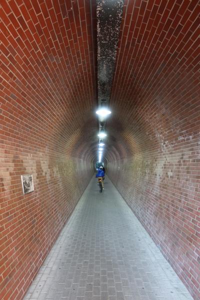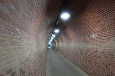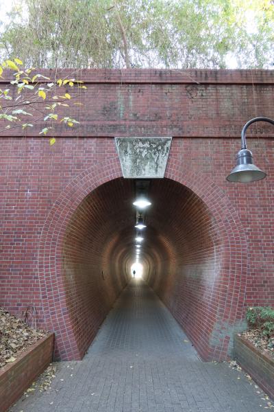 浜松城公園に北西に、国道257線の下を潜る綺麗な馬蹄型をしたレンガ積みのトンネルがあります。それが奥山線 亀山トンネル跡です。約50年前に廃止となった軽便鉄道のトンネルが遊歩道のトンネルとなっています。トンネル内には軽便鉄道の当時の写真が飾られ、それを観ながら歩くのが鉄道ファンには楽しいです。