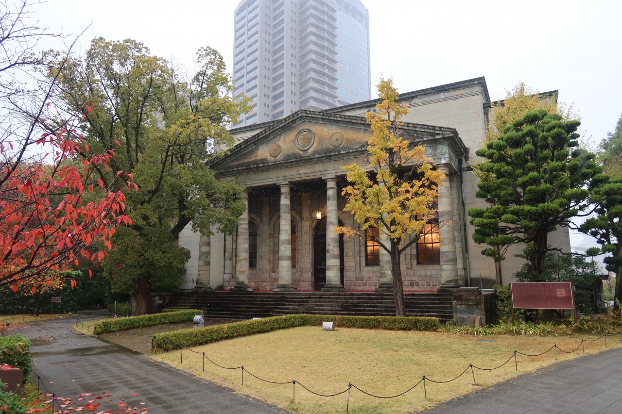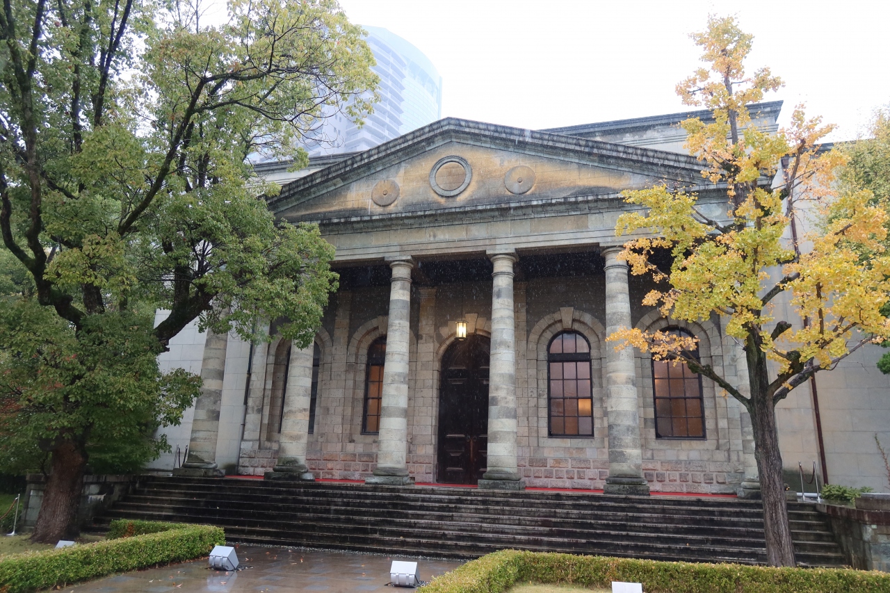 大阪造幣局の対面にある泉布観の北隣に建つ建物が旧桜宮公会堂です。昭和8年に建てられた建物で、旧造幣寮の金銀貨幣鋳造所の正面玄関が移築された建物で現在は結婚式場やレストランとして利用されています。こちらも泉布観と同様に重文に指定されています。