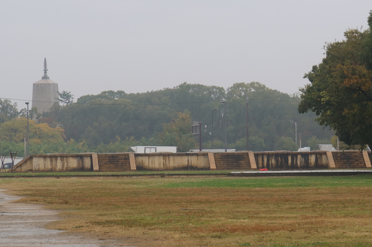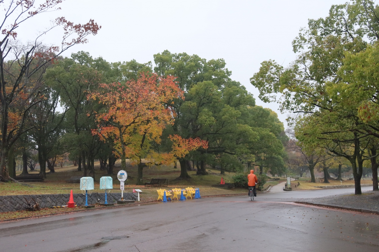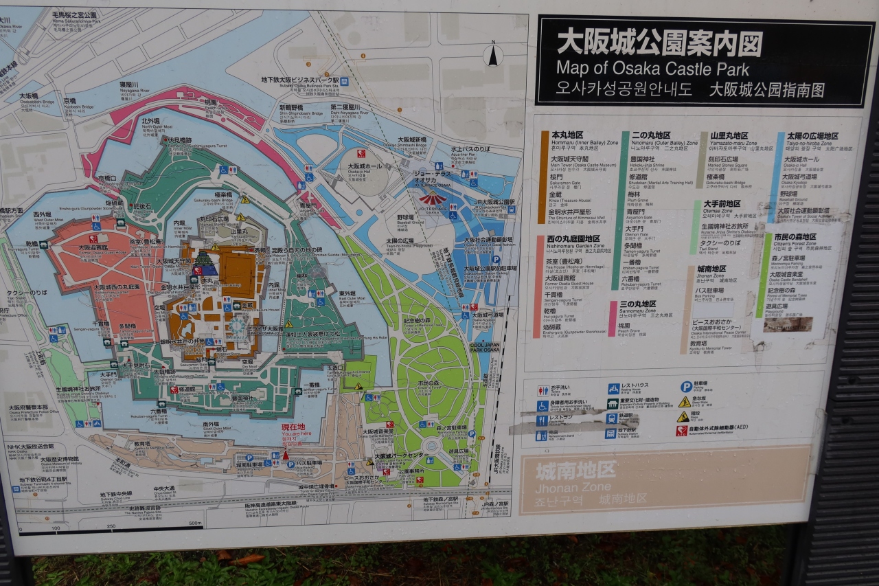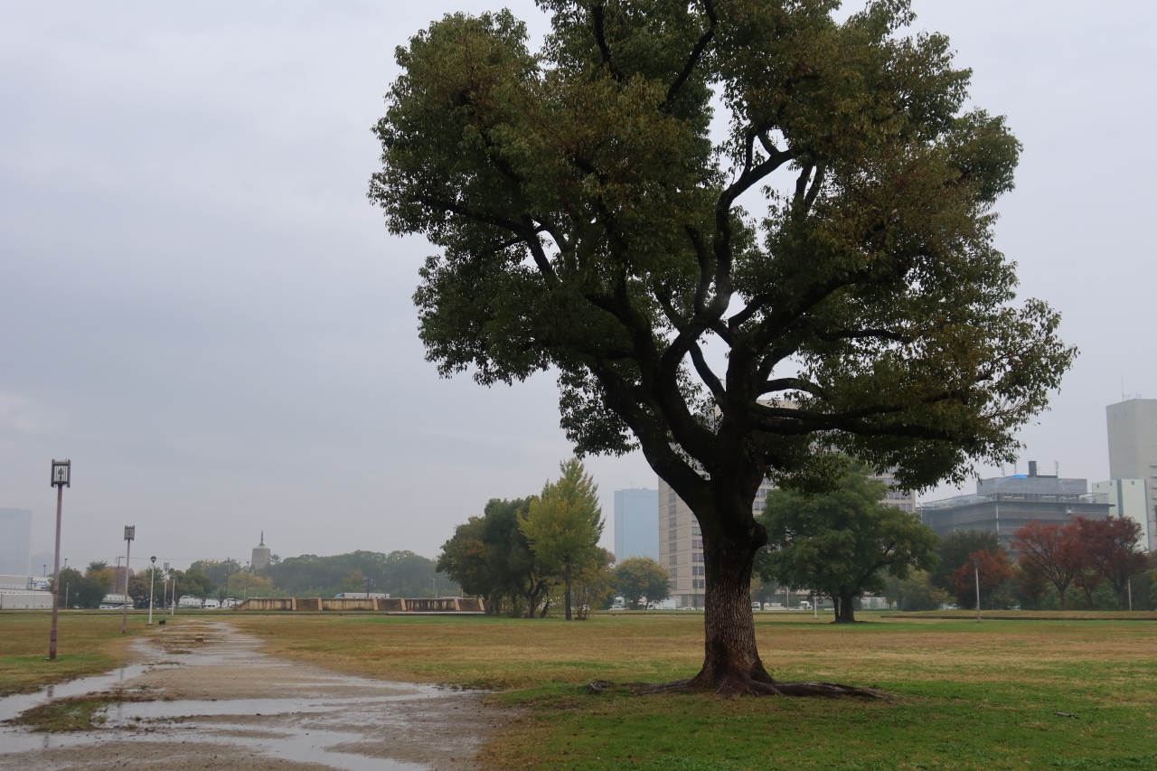 大阪城の南、阪神高速道の近くにある法円坂の一帯に広がる広場の様な公園が難波宮跡公園です。飛鳥時代から奈良時代にかけて、この場所に難波宮が置かれ、その大極殿基壇などがあります。それ以外はただの広っぱと言った感じで、訪れた日は雨だったので、ぬかるんでいて歩き辛かったです。