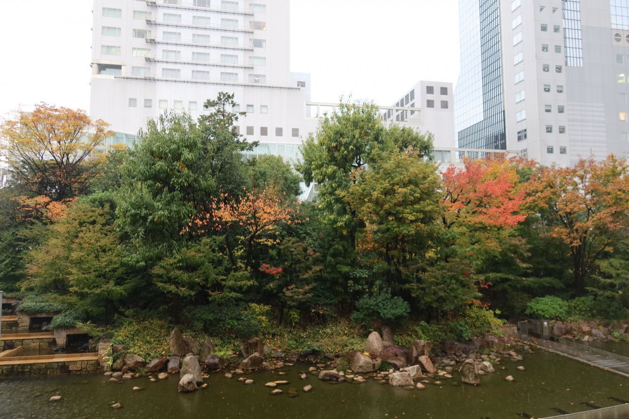 新梅田シティ、梅田スカイビルの南側、ウェスティンホテル大阪の横に中自然の森があります。森の中には滝や小川が流れ、一歩中に入ると、この場所が梅田だとは思えない様な森になっています。ウェスティンホテルからは扉を出るとすぐに中自然の森があり、ウェスティンホテルの森と言った感じです。