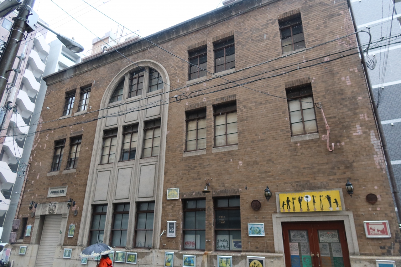 天神橋の北側に近い所にあるレトロ建築の一つがフジハラビルです。大正12年の建てられてビルは現在はアートギャラリーとして使われています。スクラッチスタイル貼りの外壁、中央部の巨大なアーチ装飾、街灯やレリーフがレトロ感たっぷり。レトロ建築好きにはたまらないビルです。