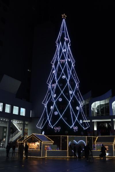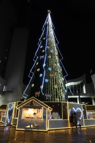 例年だと梅田スカイビルのましたで、クリスマスマーケットが開催されますが、今年もコロナの影響で、クリスマスマーケットは開催されませんでした。しかし、今年もクリスマスマーケットの主役となる、イルミネーションが施された、他では見られない程大きなクリスマスツリーは健在。これで毛でも見るとが出来て良かった。