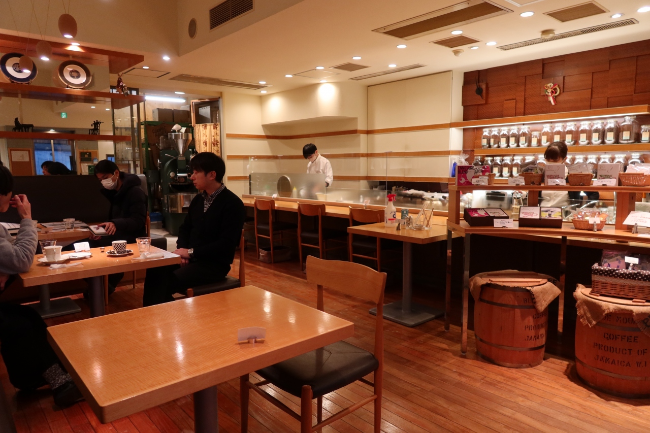 北大路通りから、下賀茂本通りを150m程南に行った所にあるカフェです。自家焙煎珈琲が売りのお店で、店の奥には焙煎機が置かれ、店内は良い香りが漂います。客席はカウンター席とテーブル席があり、客層は観光客よりも京都の人が多いようです。京都人になった様な雰囲気が楽しめる美味しいカフェです。