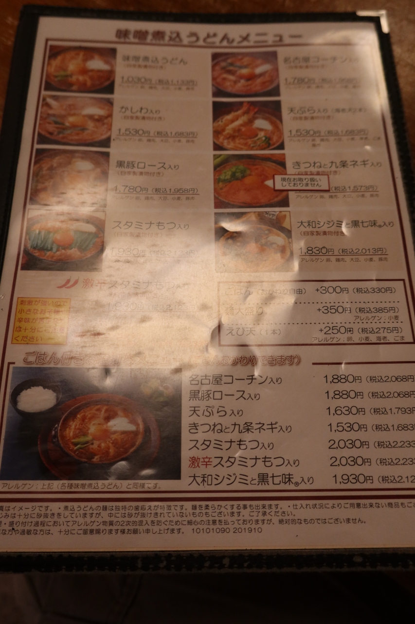 名古屋めしを代表する味噌煮込みうどんの山本屋は本店と総本家と2つの山本屋があり、山本屋本店の本店がこの大門本店。場所は中村区役所の近くにあります。少し古ぼけたマンションの1階にあります。外観は狭そうですが、店内は意外と広く新型コロナも気になりませんでした。本店なので特別メニューなどがあるかなぁと期待しましたが、他のお店と同じメニュー。味噌煮込みうどんの味は他の店と同様美味しかったです。
