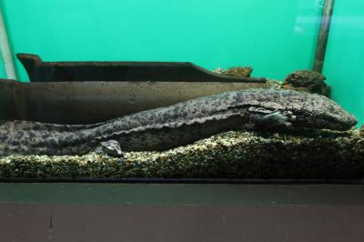 赤目四十八滝の入城口を入った先にある建物が日本サンショウウオセンターです。日本の天然記念物に指定されているオオサンショウウオを始め、国内外のサンショウウオが水槽に展示されており、同じサンショウウオでも違いが分かりました。ただ、人によっても気持ち悪いと感じる人も多いと思います。
