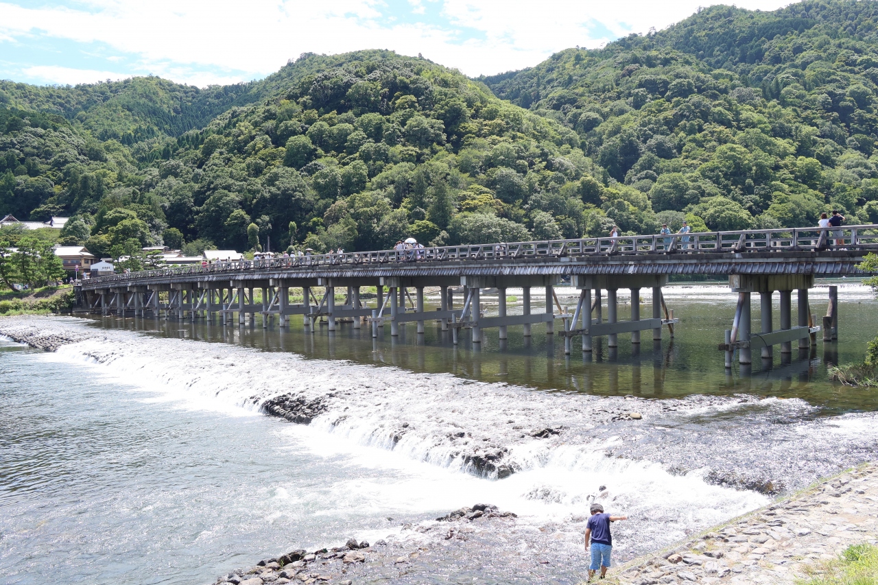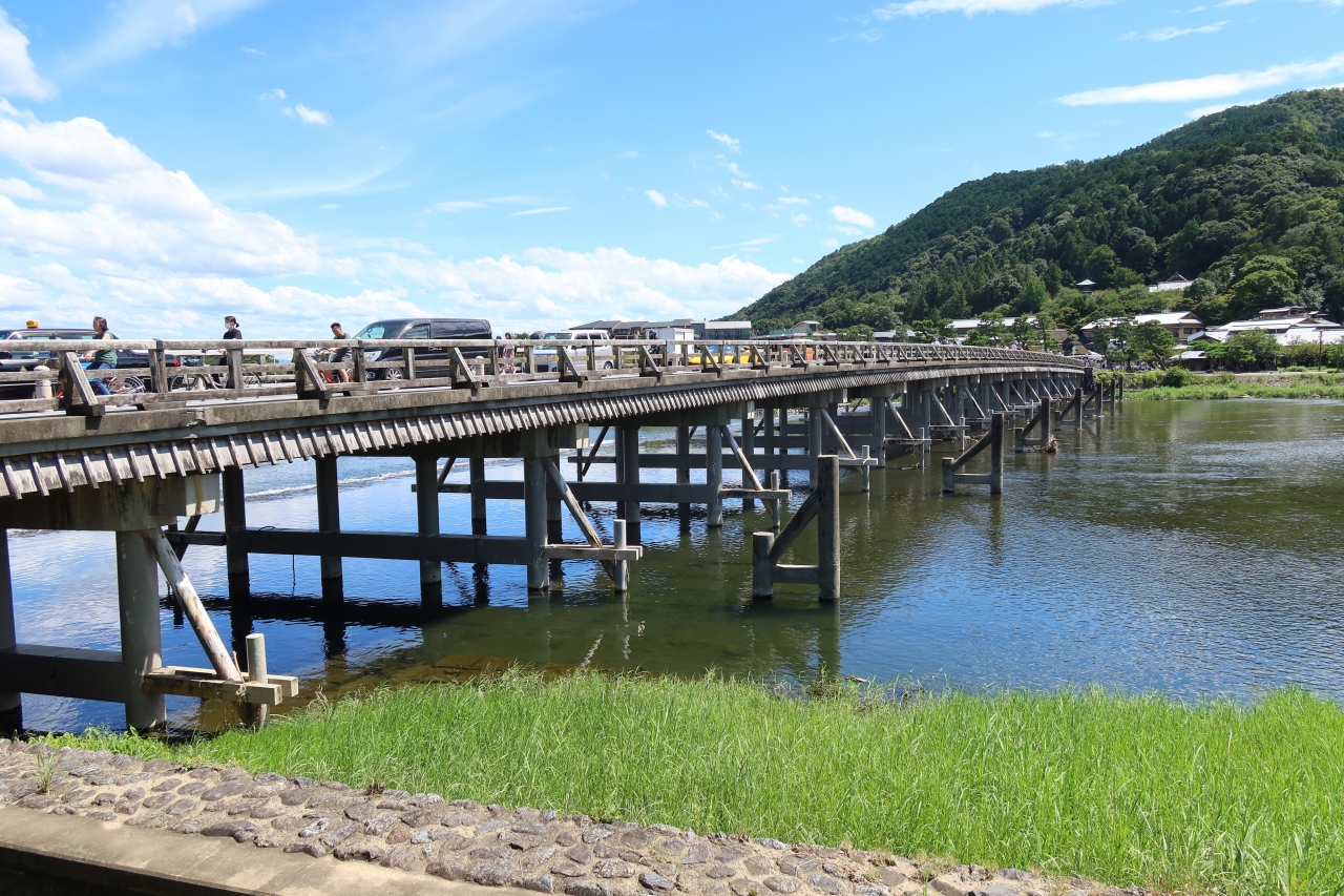 京都 嵐山を流れる桂川に架かる橋が渡月橋です。亀山天皇が渡月橋と名付けたそうですが、月を渡る橋とは、嵐山の桂川に移る月の上を渡る橋というネーミングがとても合っていて素敵です。以前来たときは橋の上に車が数珠つなぎとなっていましたが、今年は適度の交通量でした。