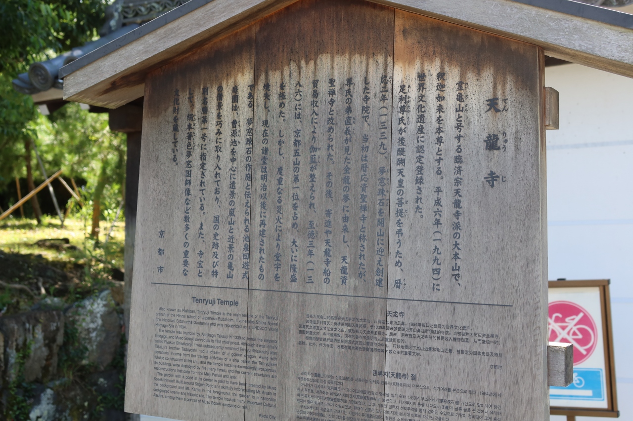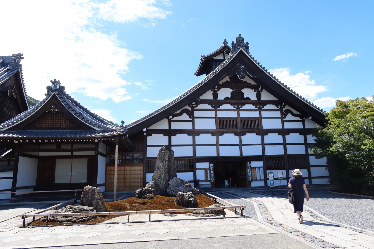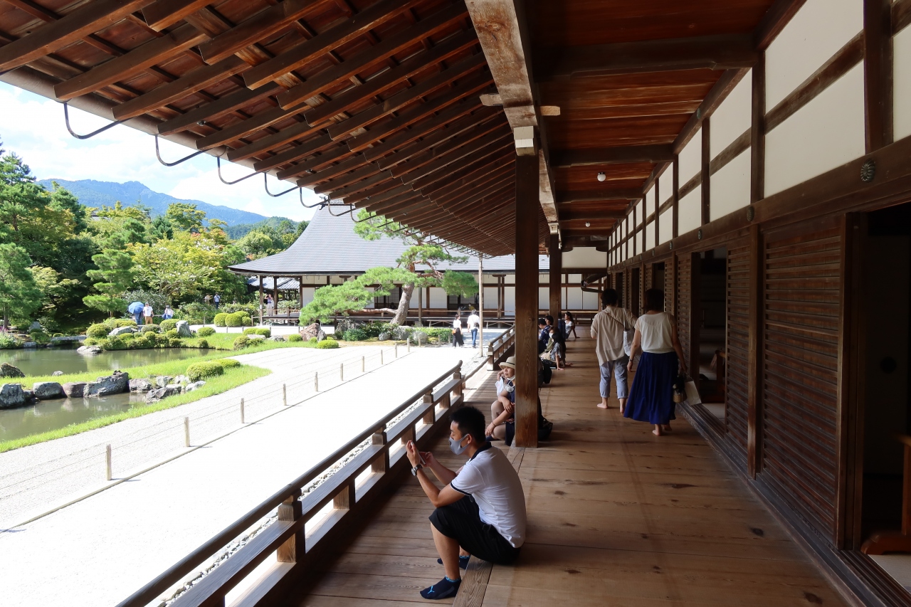 世界遺産に指定されている天龍寺の大方丈の前に広がる庭園が曹源池庭園です。日本で初めて特別名勝に指定された名庭園です。以前来たときは紅葉の時期で、それは美しい景色が観られましたが、夏も青々とした姿も良く、四季折々の景色が観られます。大方丈の縁側に座ってこの景色を見ると日本という国は美しい文化を持つ国なんだとつくづく思いました。