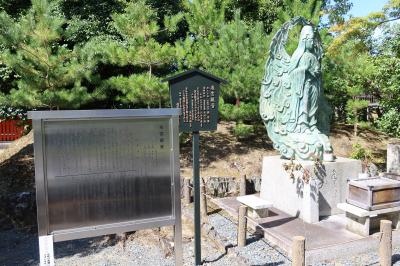 天龍寺の参道を進んだ先、右手にある八幡大菩薩の鳥居右手に飛雲観音があります。飛雲観音は航空安全、世界平和を祈願して建立されたものですが、ここに建立されたのは若くして戦争で散った航空兵を追悼するために作られました。