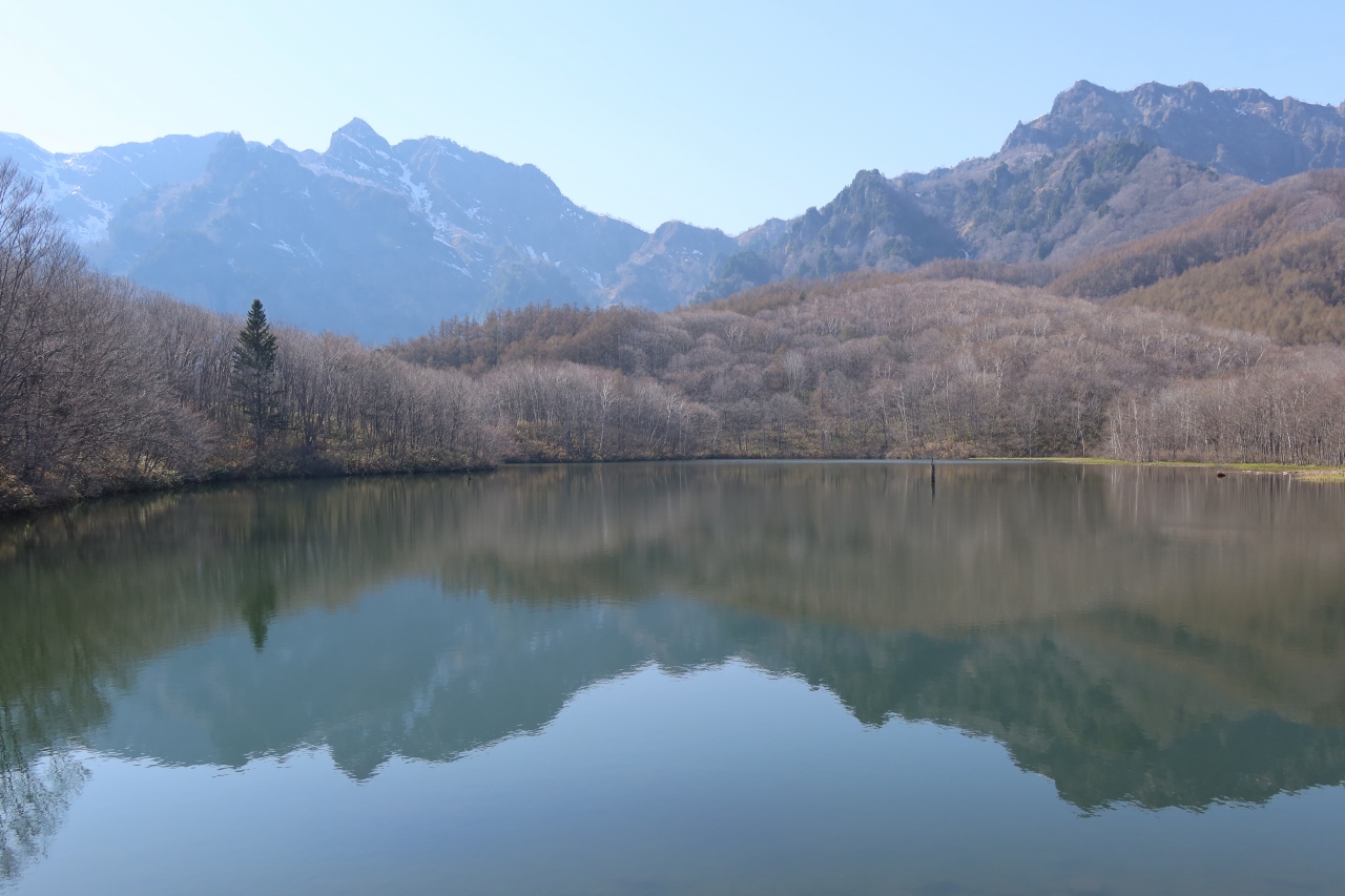 戸隠の小鳥ケ池から西に入った所に鏡池があります。この池は名前の通りで、池面が鏡の様に静かで、池の奥にそびえる西岳、戸隠山と、池面に映り込んだ西岳、戸隠山の姿が絵画の様に見えます。池の周辺は芝生に広場もあり、鏡池の移り行く姿を見ながらまったりするのも良いかと思います。戸隠一の絶景スポットではないでしょうか。