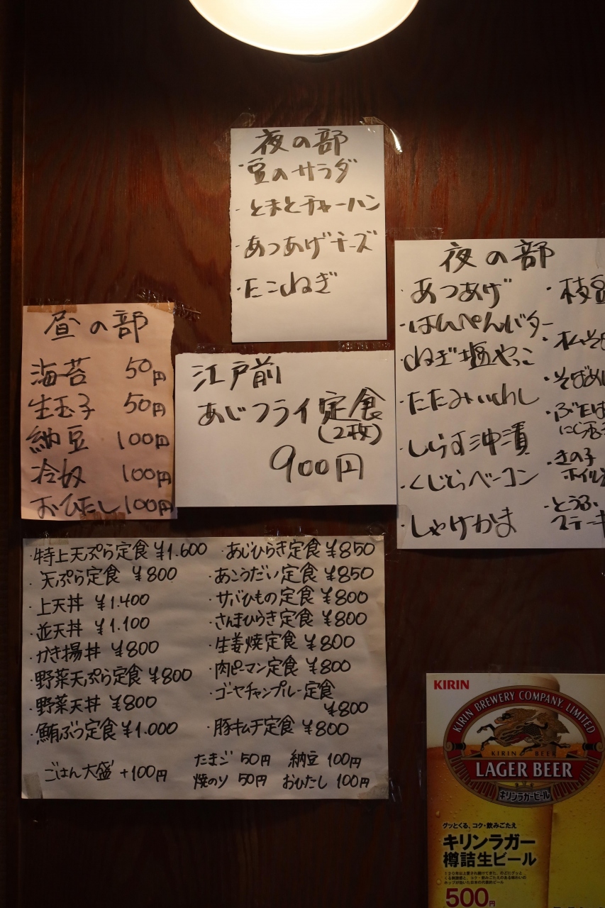 北品川の品川船溜まりに近い八ツ山通り沿いにある天ぷら店です。天ぷら店と言うと高級そうなイメージがありますが、このお店は庶民的な感じです。店内は少し薄暗くテーブル席が5席程の小さなお店。メニューには天ぷら以外の定食もありますが、頂いたのは上天丼1400円、上天ぷら定食1600円。どちらもアナゴ、エビ、キス等が入っており具は良いのですが、少しべたっとした感じがし、コスパは良いですが、グルメサイトの評価程美味しいとは思いませんでした。