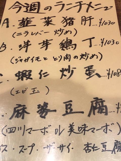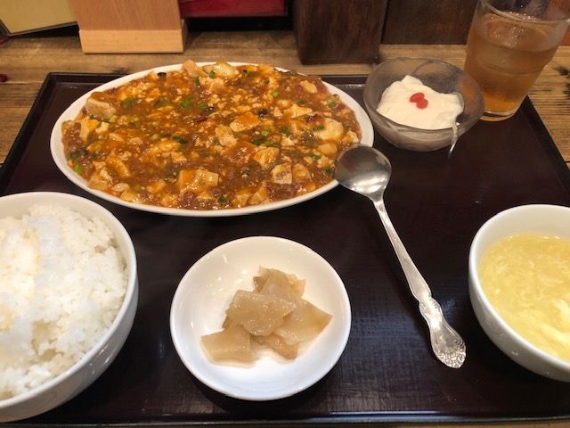 店内はカウンター席とテーブル席があります。頂いたのは麻婆豆腐のランチメニュー。麻婆豆腐、ライス、卵スープ、ザーサイ、杏仁豆腐がついて980円と安いです。麻婆豆腐は四川風を選んだのですが、豆鼓しか入っておらず、花椒はなし。美味しいことは美味しいのですが、ちょっと辛さが物足りなかったです。