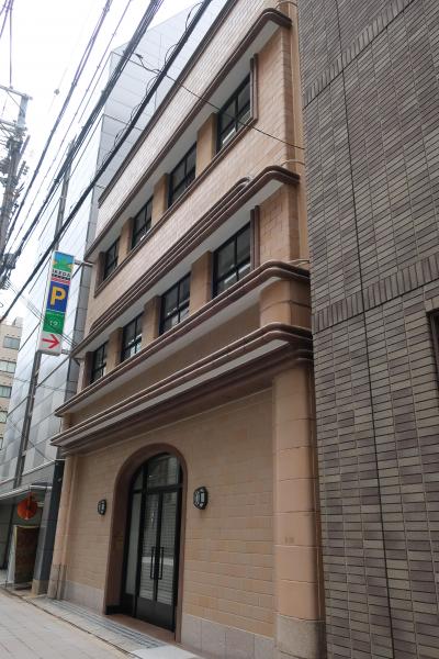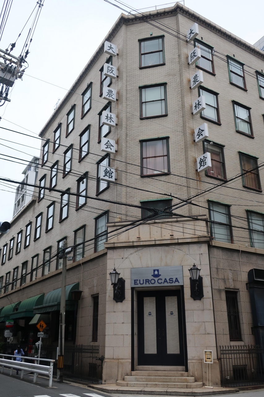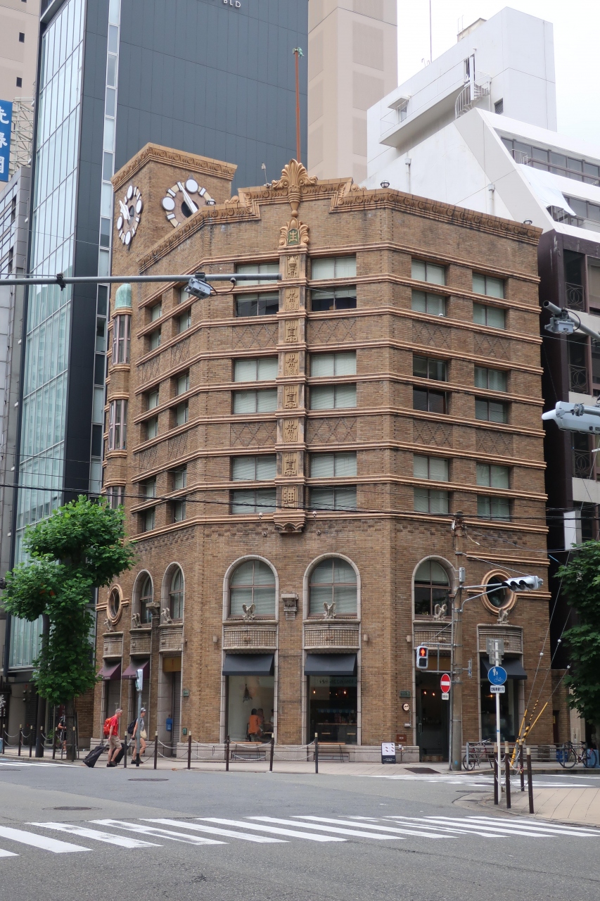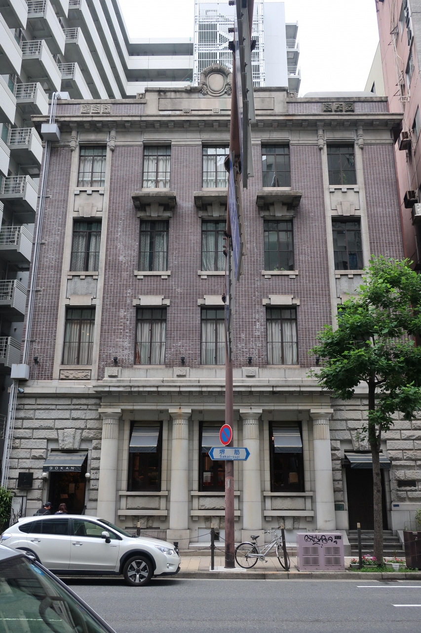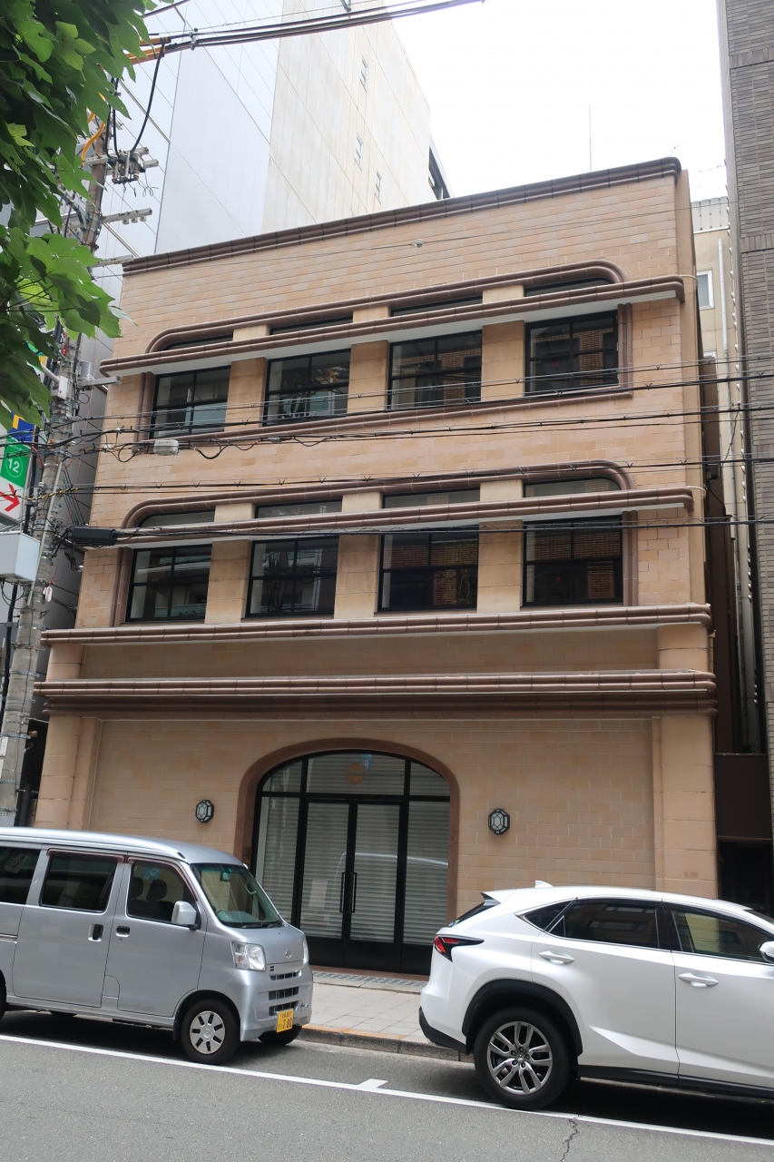北浜の三休橋筋と道修町通り交差点を一筋南に入って東に行った所に小川香料大阪支店社屋があります。昭和5年に建てられた建物は鉄筋コンクリート造3階建て。アールデコ調の丸まった窓枠が特徴的です。行く前に見ていた写真では4階建てだったのが3階建てに減築、1階部分の外観も改装されており、がっかりでした。