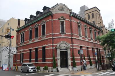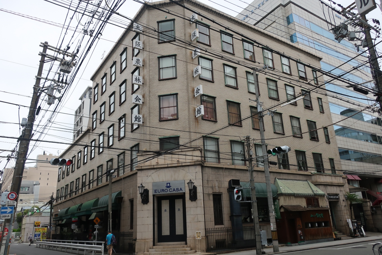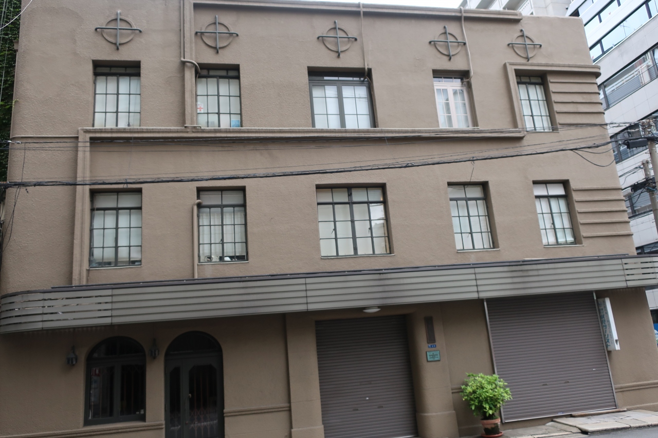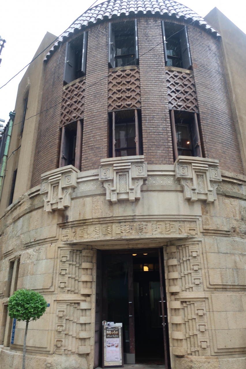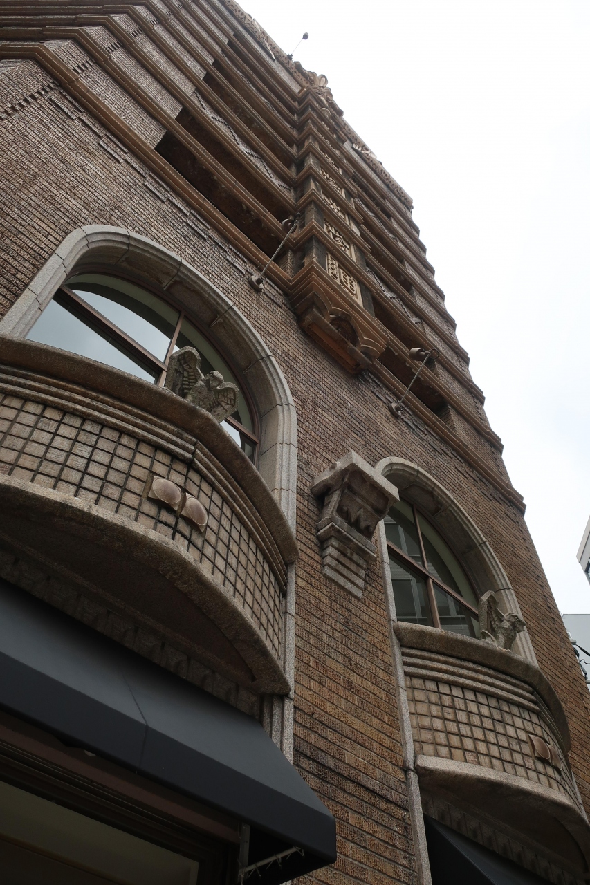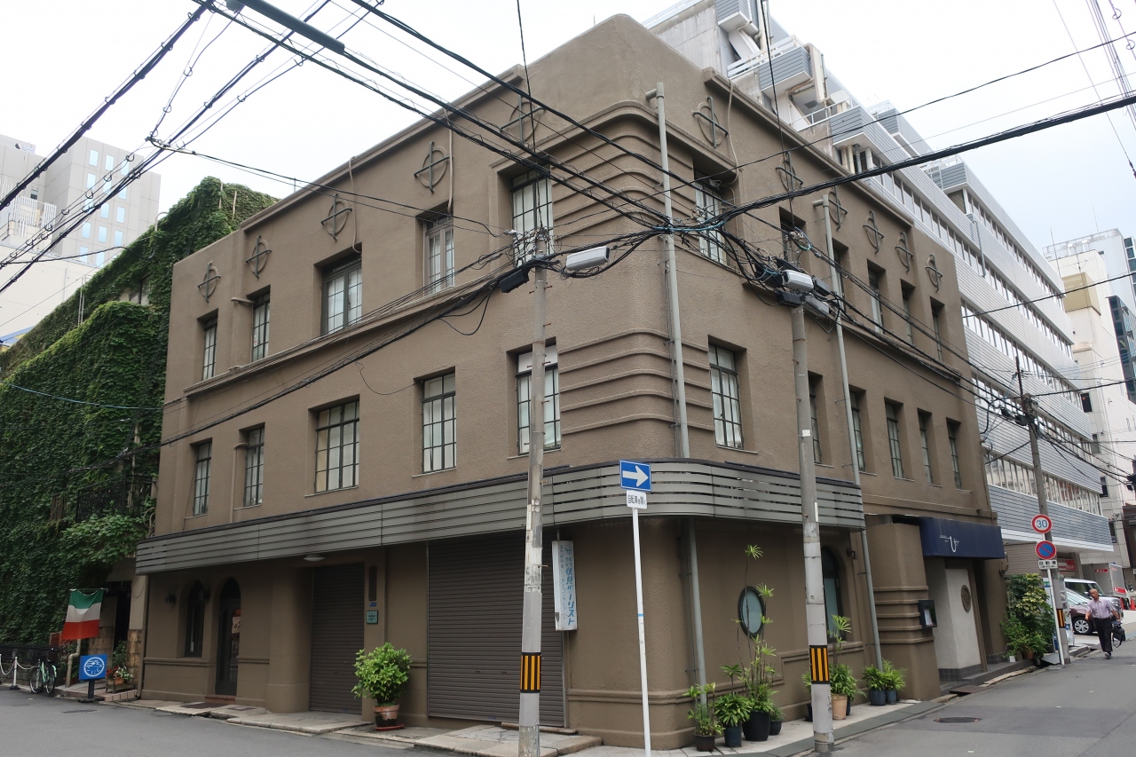 北浜の三休橋筋と道修町通り交差点を一筋南に入って東に行った所に小川香料大阪支店社屋があります。昭和5年に建てられた建物は鉄筋コンクリート造3階建て。アールデコ調の丸まった窓枠が特徴的です。行く前に見ていた写真では4階建てだったのが3階建てに減築、1階部分の外観も改装されており、がっかりでした。