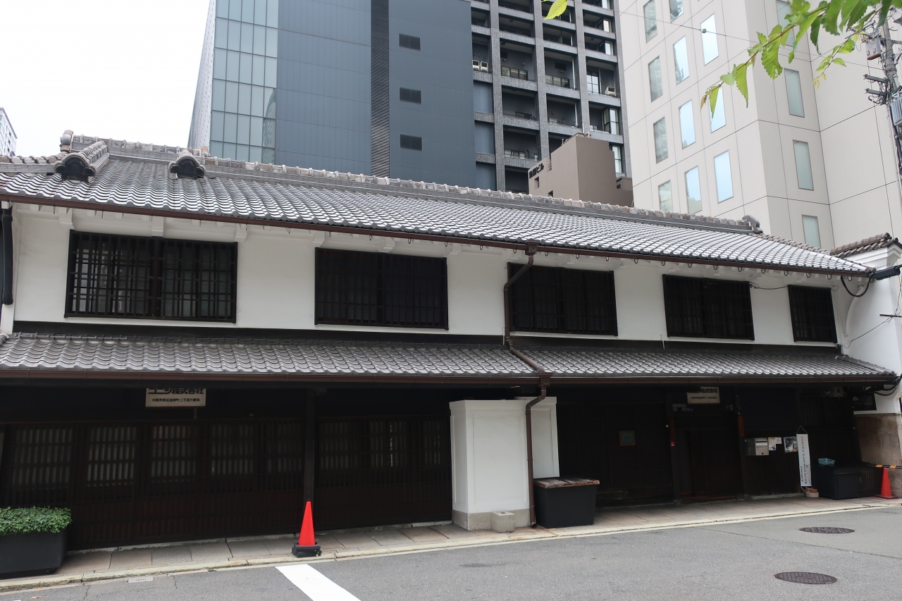 北浜の堺町筋と道修町通との交差点に商家の建物があります。それが旧小西家住宅です。明治36年に建てられた重要文化財に指定されている表屋造りの町屋建築です。堺町筋沿いにはビルや商店が並ぶ中、蔵や、母屋が並ぶ旧小西家住宅は異彩を放ち、とても貴重な存在です。内部は非公開なので外からしか見学できませんが、中を覗いてみたいと思う建築です。