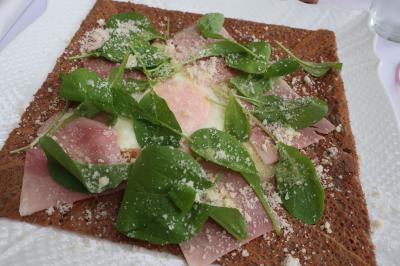 芦屋川駅から芦屋川沿いを150m程下った所にあるカフェ・レストランです。本当は隣にあるリストランテ・ベリーニに行きたかったのですが、予約が取れずカーサ・ベリーニでランチを頂きました。頂いたのはガレットとパスタ。ガレットは普通でしたが、パスタはメニューになく、レストランで出しているパスタと同じその日のパスタで、その日は鱧のパスタでした。食べたことのないパスタで、キュウリと鱧が絶妙でした。