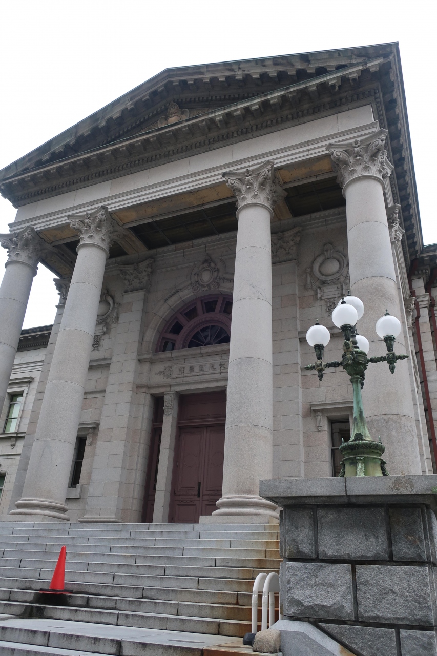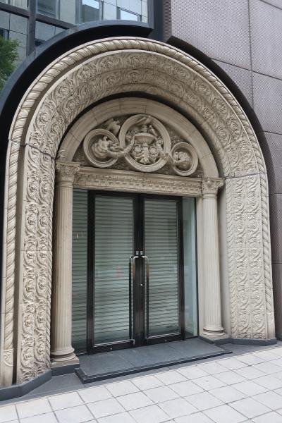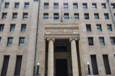 大阪の北浜、淀屋橋界隈には戦前から残る近代洋風建築(所謂レトロ建築)が多く残る場所で、三井住友銀行大阪本店もその一つです。大正15年に住友ビルディングとして建てられた建物は分厚い石組みの直線的な外観に巨大なファサードの入口が、いかにも銀行と言った雰囲気を醸し出しています。東京日本橋の三井本館のに勝るとも劣らないレトロ建築です。