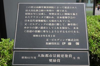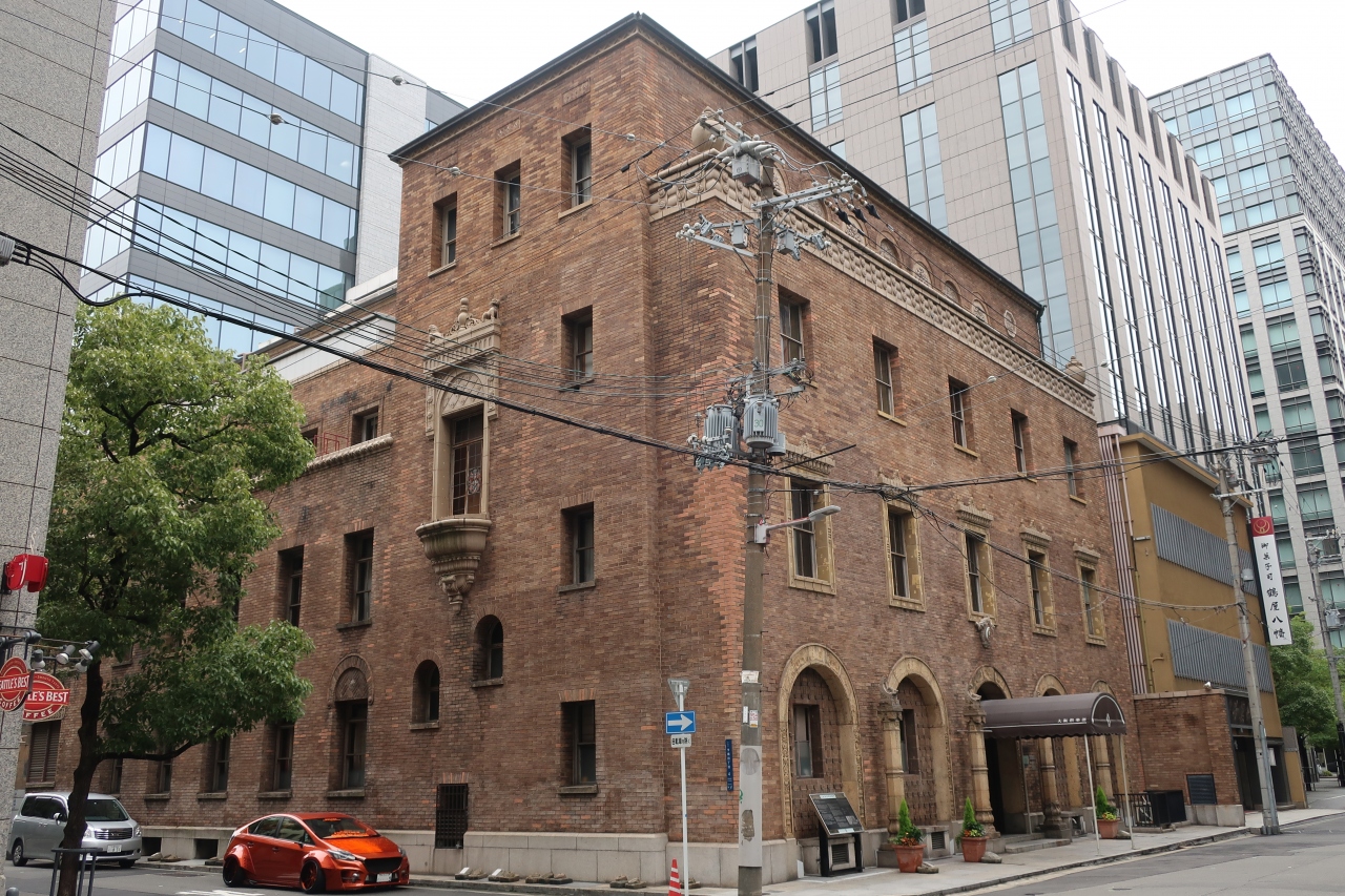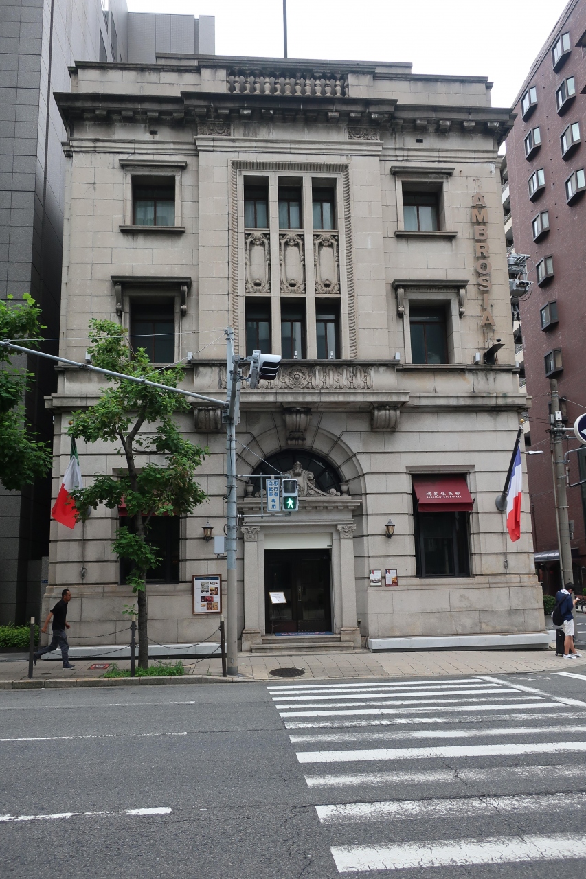 堺町筋を長堀橋交差点から3ブロック上がった交差点に旧川崎貯蓄銀行大阪支店(現堺筋倶楽部)があります。現在はイタリアンレストラン AMBROSIAとして利用されている建物は昭和6年に建てられた鉄筋コンクリート造りの3階建て。正面のデザインは如何にも銀行であったことを物語る様な威厳のある装飾が見事です。内部を見るんは食事をしないと見られませんが、外観だけでも見る価値あるレトロ建築です。