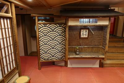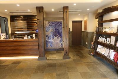 天童駅東側正面の温泉通りを1km程行った所にある温泉旅館です。道路に面した所に入口がなく、駐車場に面した所にあります。入口を入るとまた古い黒門。そこは入口ではなく、右に進んでギャラリーを通って館内に入るようになっており、ちょっと戸惑いました。