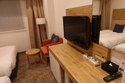 宿泊したのは8階のツインルームの部屋。部屋は17平米とそんなには広くはありませんが、トイレとバスルームはセパレートされており、また、室内の設備も新しく快適に過ごせます。