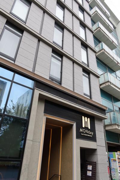 烏丸通り沿い、夷川通りと二条通りの中間西側にhotel MONday 京都烏丸二条があります。北側に同系列のホテルマンデー 京都丸太町があるので間違えそうになりました。