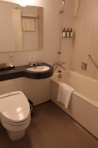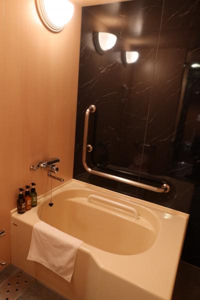 部屋には車いすで利用できるように、充分なスペースがあり、ベッド間も車椅子が横付けできる幅があり、バスルームへの車椅子の人でも利用できるように手すりが設けられ、浴槽も深さのあるバスタブが備わっていました。